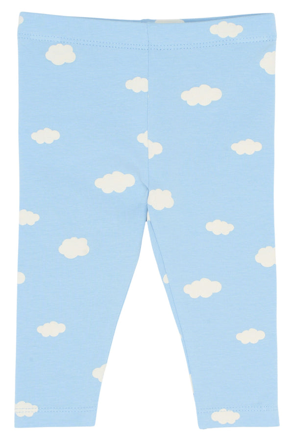 Comfortable leggings for boys with the sweetest cloud print in white against a blue background, creating a fresh and playful look. They are easy to pair with a t-shirt or hoodie and are perfect for both everyday wear and active days. The elastic waistband ensures a comfortable fit all day long. Pair with the matching long-sleeved tee for a cute outfit.