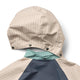 New wind- and waterproof jacket with color blocking for children.