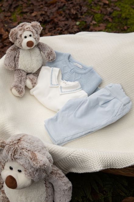Blue fine knit cardigan with cable knit detail to the front, ideal pair with the Blue Dream trousers and Bodysuit