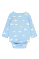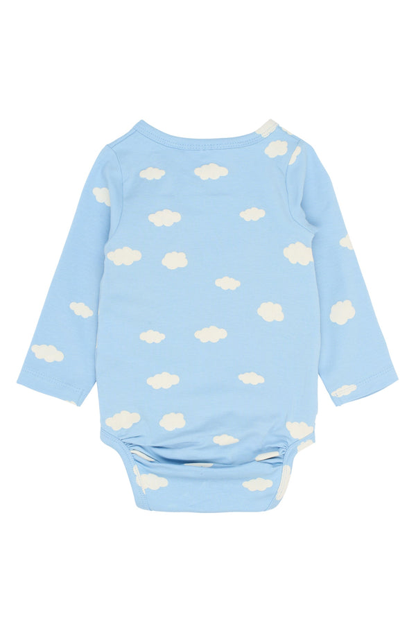 This long-sleeved wrap body for boys is both cute and practical with a beautiful print of white clouds on a blue background, creating a calming and heavenly look. The diagonal snap closure in the front makes this body easy to put on and take off, while giving a stylish and comfortable appearance. The soft and stretchy fabric ensures that your little one has full movement throughout the day.