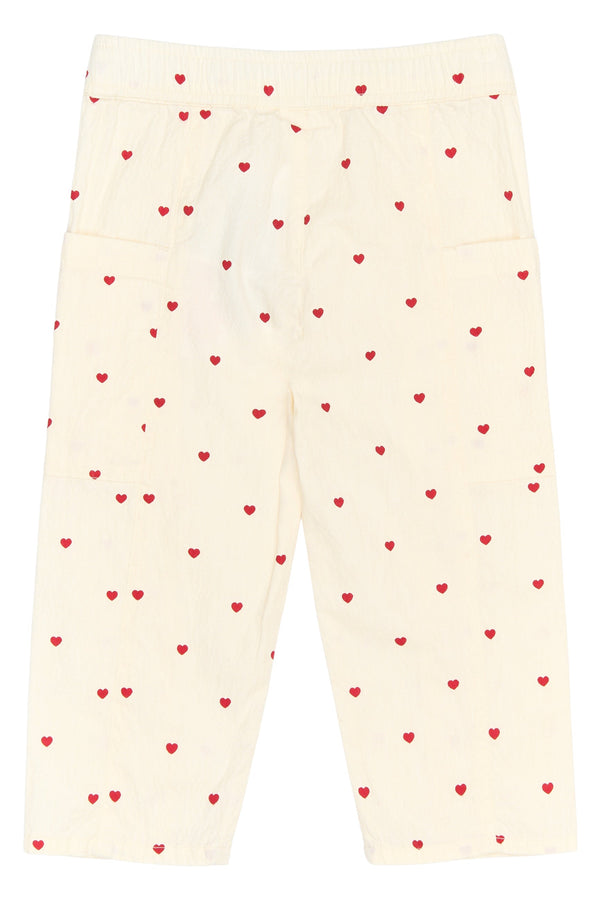 These pants from The New Siblings offer a delightful blend of comfort and charm. Designed with a playful all-over heart print, they feature a relaxed fit that allows for plenty of freedom to move during everyday activities. The elastic waistband and roomy front pockets make them both practical and comfortable for little adventurers.