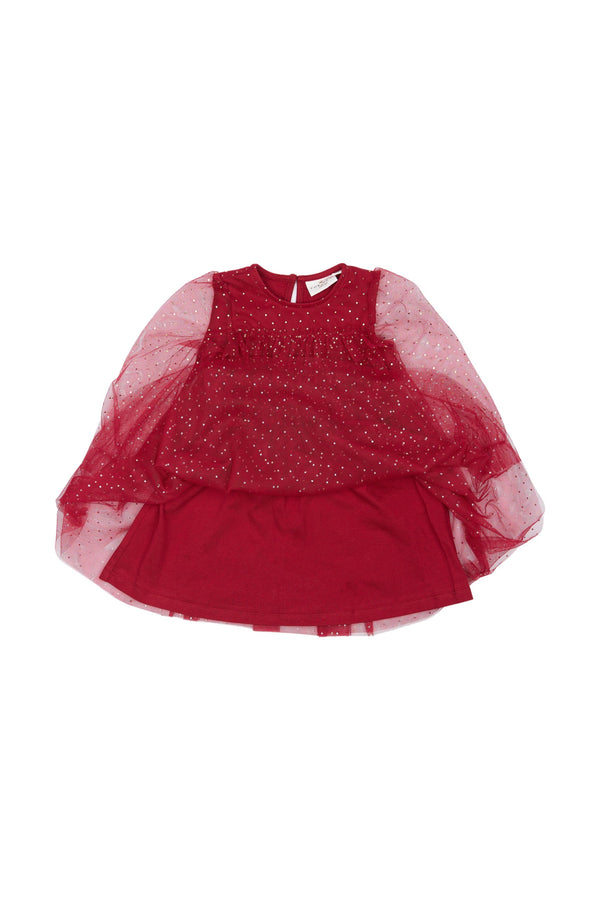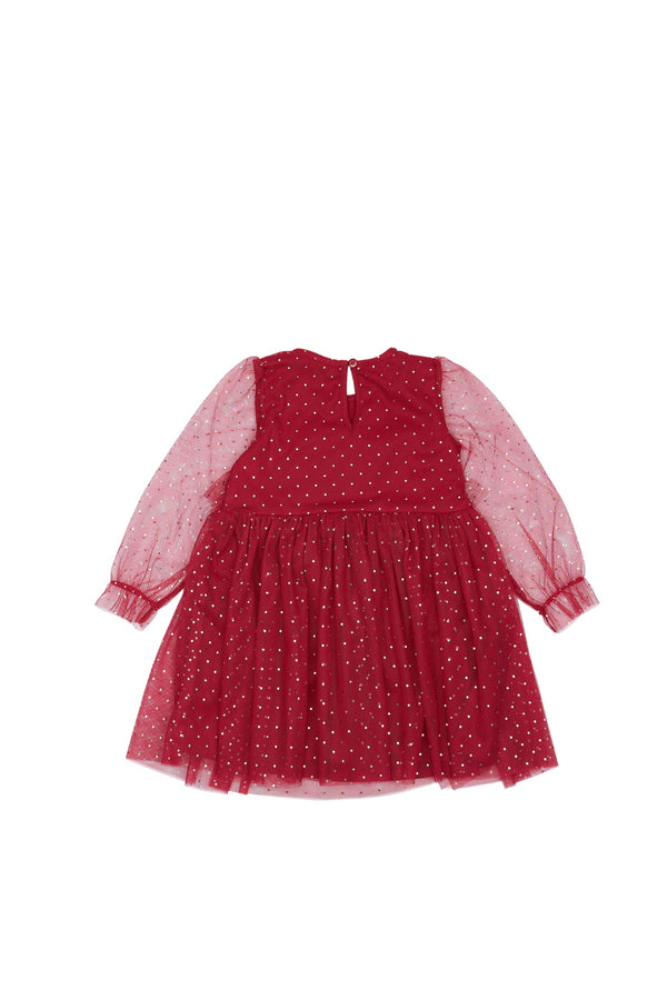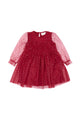Enchanting THE NEW Siblings dress that will delight any little girl. The feminine ruffle details give the dress an extra adorable expression. This lightweight and sparkling mesh dress with small golden dots is the perfect party dress for Christmas parties, Christmas Eve, New Year's Eve, and other special occasions.
