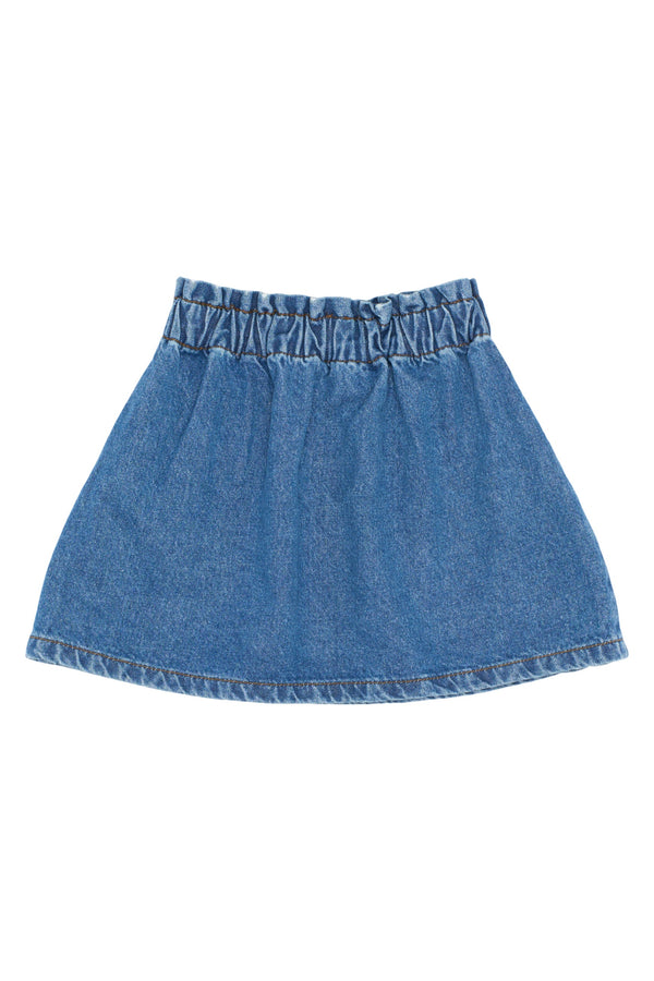 This denim skirt from THE NEW siblings is both cute and comfortable. The skirt features an elastic waistband, ensuring a comfortable fit and making it easy to put on and take off. It is designed with a small front pocket decorated with a smiling face, adding a fun and playful touch. The durable denim quality makes it suitable for both play and everyday wear. Perfect to style with a T-shirt or sweatshirt for a casual look.