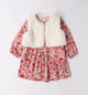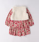 This completed look from Sarabanda is makes the perfect gift for any little girl. The 2 piece dress with separate vest can be worn together or equally both piece can be worn individually. The long sleeve shift style dress in a beautiful ecru and raspberry pink floral print pairs perfectly with the cream fur vest.