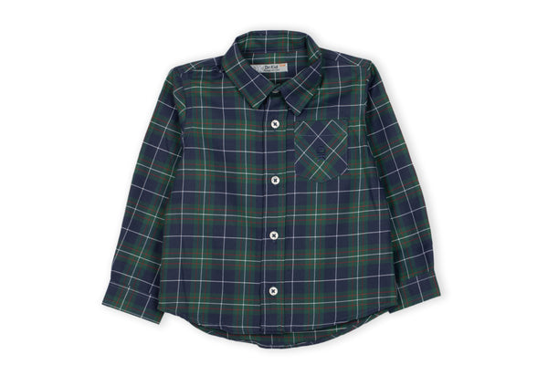 A large check shirt with button up front and collar. This isa very traditional style tartan check in green and navy. Wear it closed for a smart look or equally pair this shirt with a t-shirt and wear it open for a more relax style.