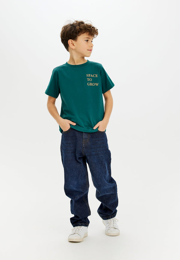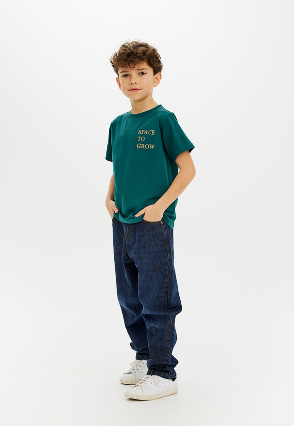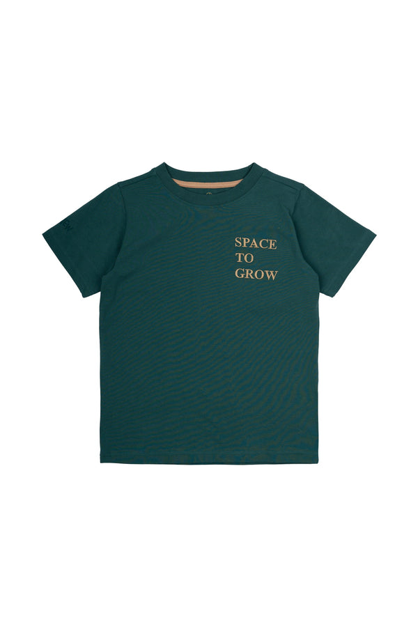 Smart and sleek green t-shirt with a cool print on the chest featuring the text 'Space to grow'. This t-shirt from THE NEW is a versatile addition to the boy's wardrobe.