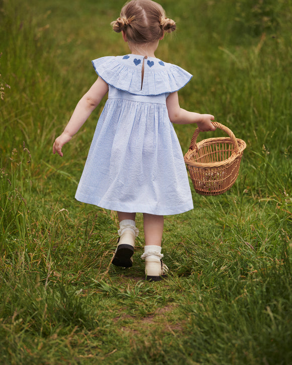 SEERSUCKER DRESS W. HEART - OCEAN BLUE