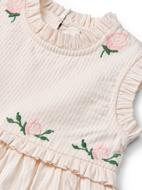 SEERSUCKER DRESS W. RUFFLES AND EMB. - DUSTY ROSE