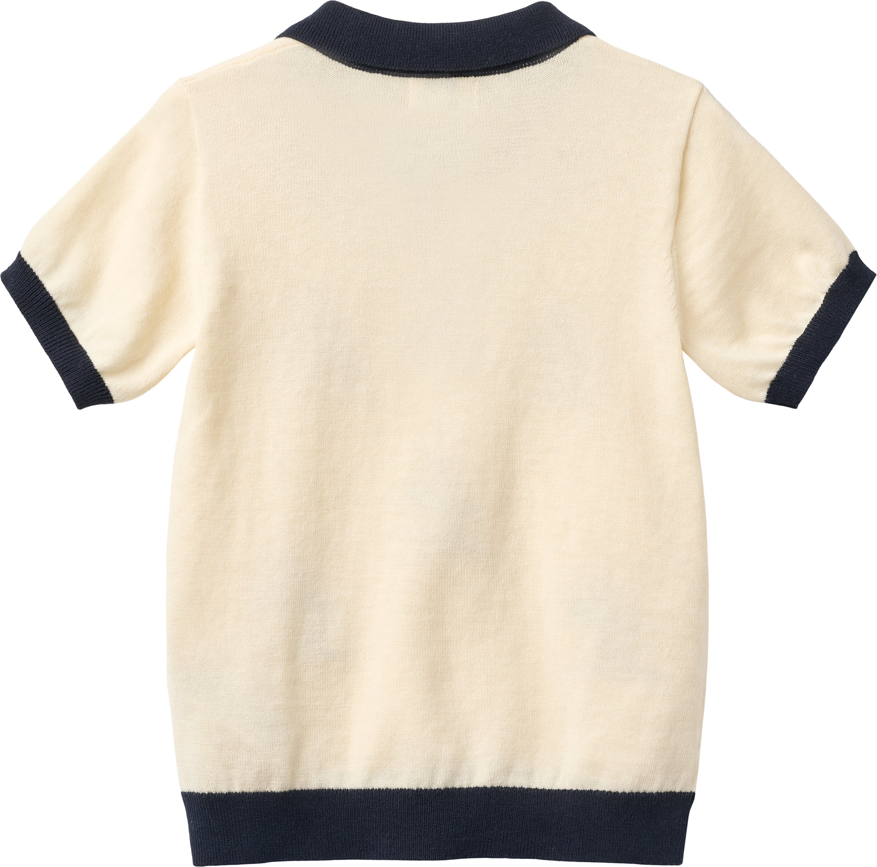 Cotton Knitted Polo adorned with a charming small boat embroidery on the front. The polo boasts a timeless straight fit and is meticulously designed with a flat shirt collar, featuring a contrasting color stripe along the collar, sleeves, and bottom hem. The ribbed hems add a touch of refinement, while the front button closure showcases corozo buttons for an extra dash of sophistication. Crafted in stockinette stitch, this polo is not only stylish but also exceptionally soft.