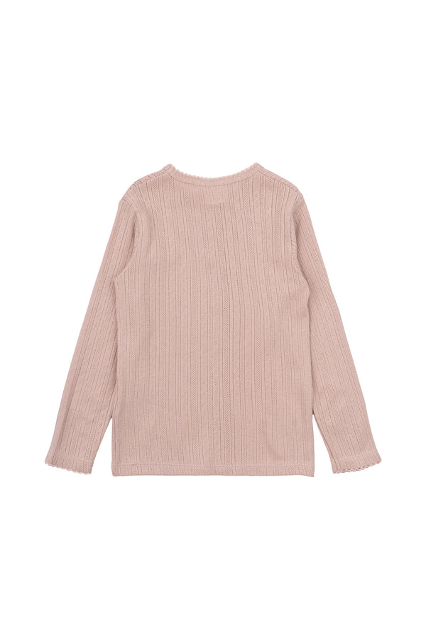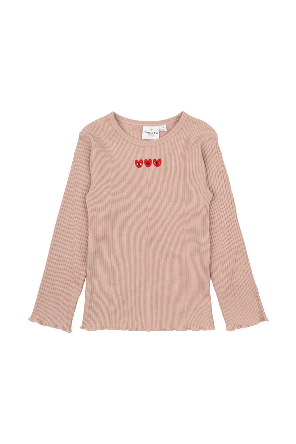 Simple and nice long-sleeved rib-knitted baby blouse from THE NEW siblings. This simple blouse is suitable for both everyday wear and special occasions. The three small hearts at the front add a sweet and feminine look.