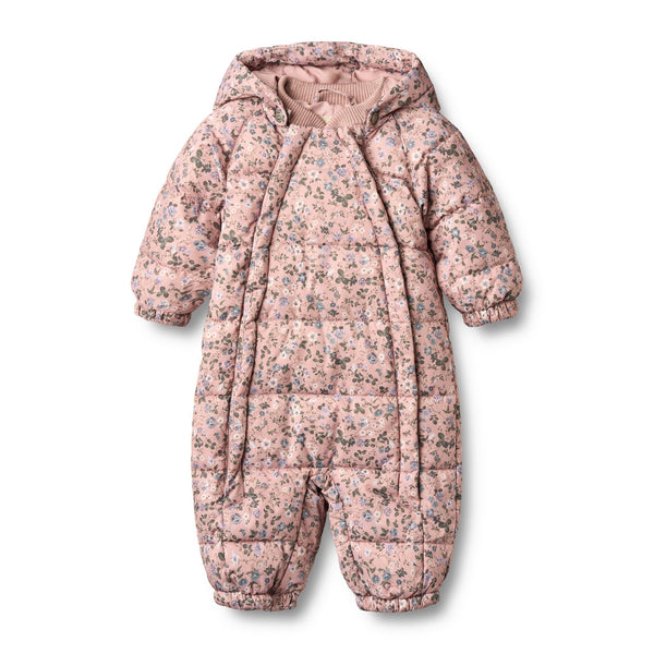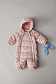 Printed puffer suit for your baby.