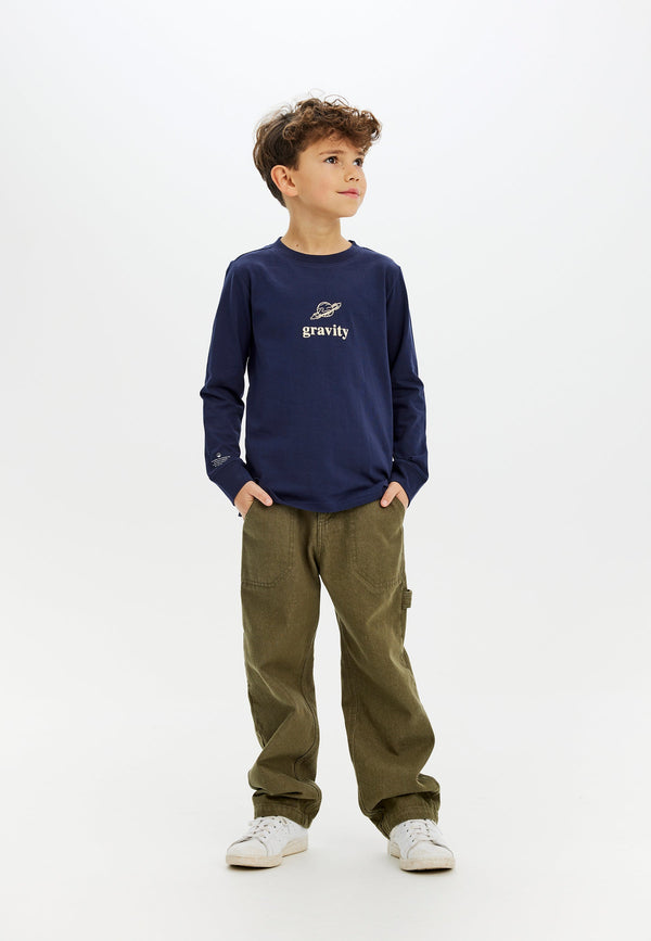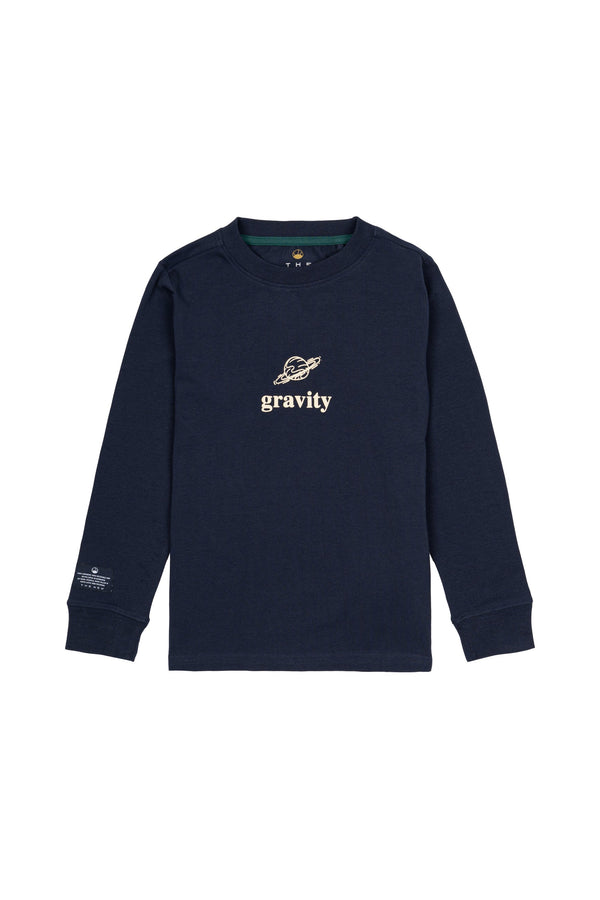 Stylish long-sleeved blouse featuring a front print of the text 'gravity' along with a planet. The blouse is suitable for everyday wear and can be styled in many different ways.