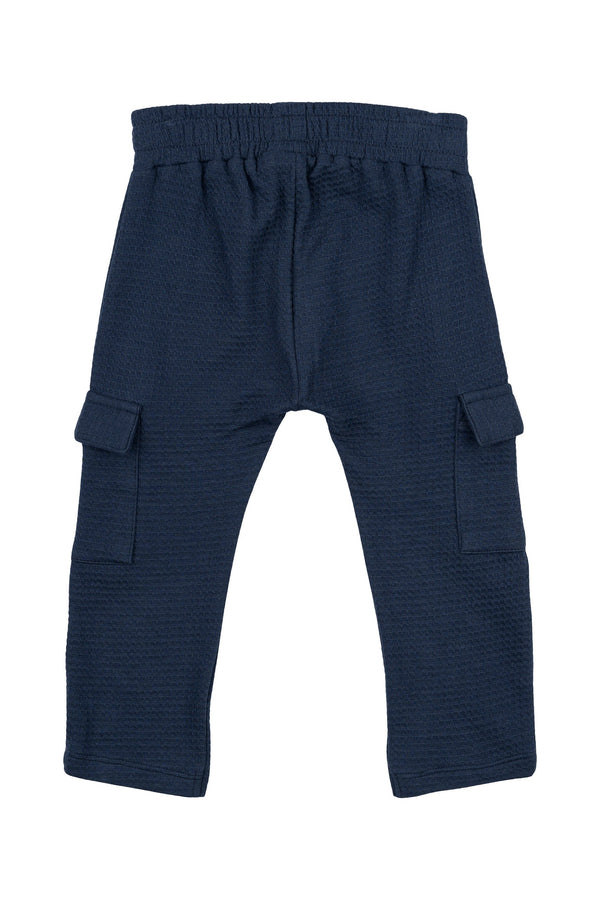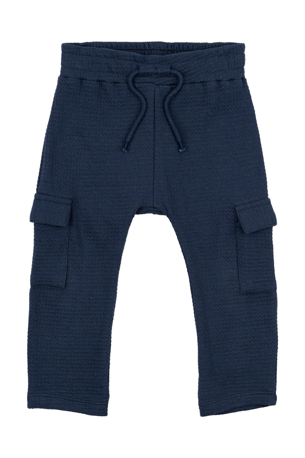 Solid-coloured baby sweatpants with a very special expression, as the fabric has a pattern of small rectangles, making the fabric resemble and feel like the surface of a waffle.