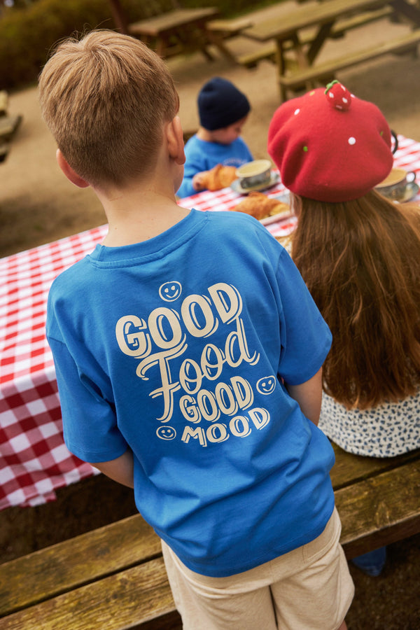 This THE NEW t-shirt with a simple design that goes well with many different bottoms. The t-shirt features a print of a smiley and the text 'Good Mood'. It is a comfortable and versatile addition to the child's wardrobe.