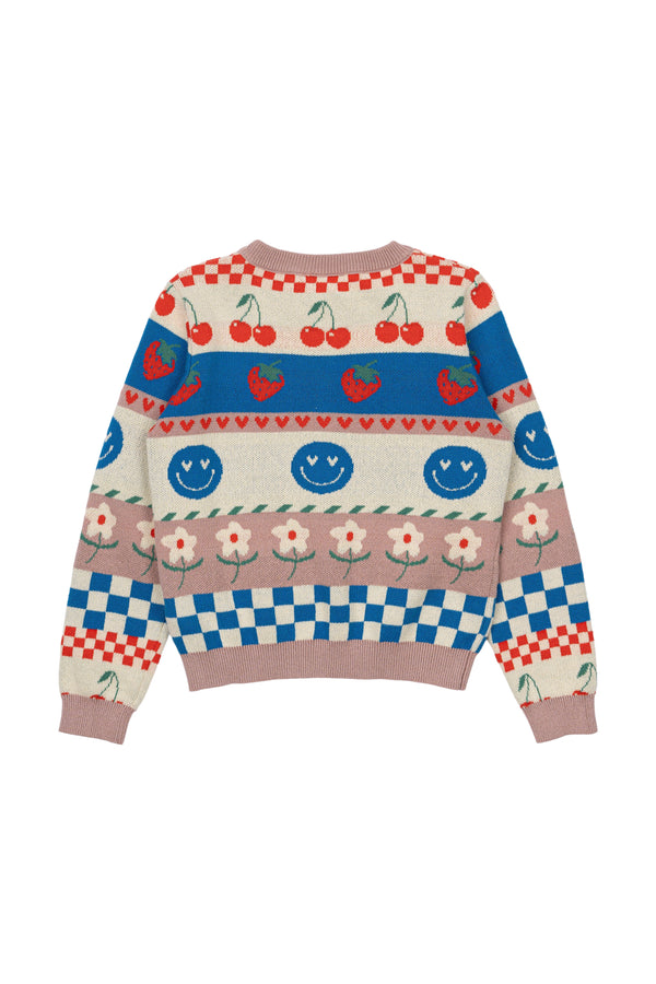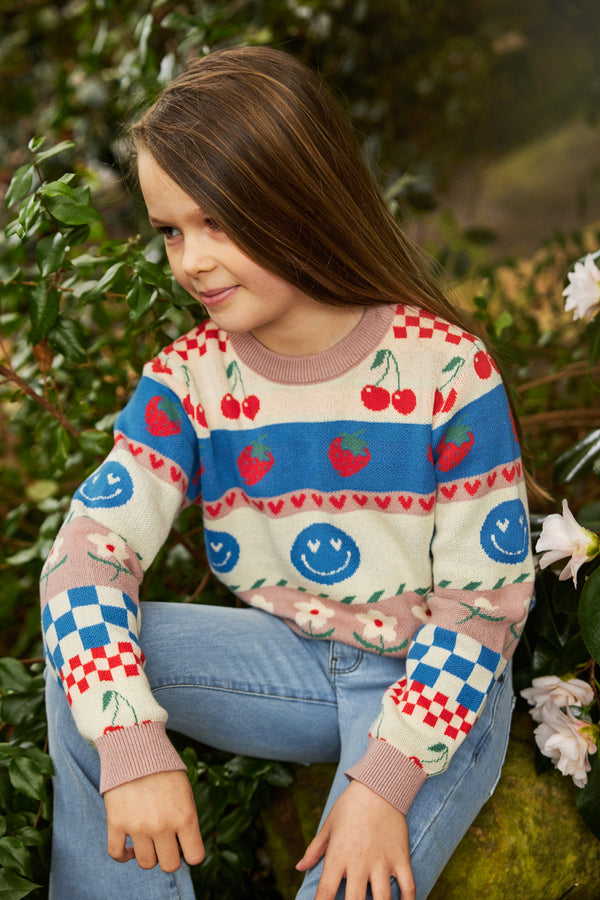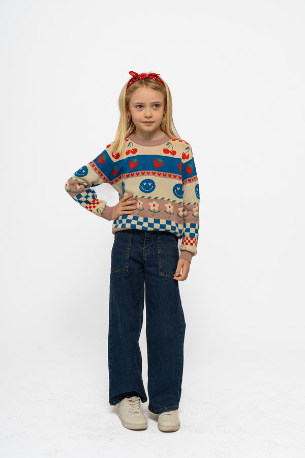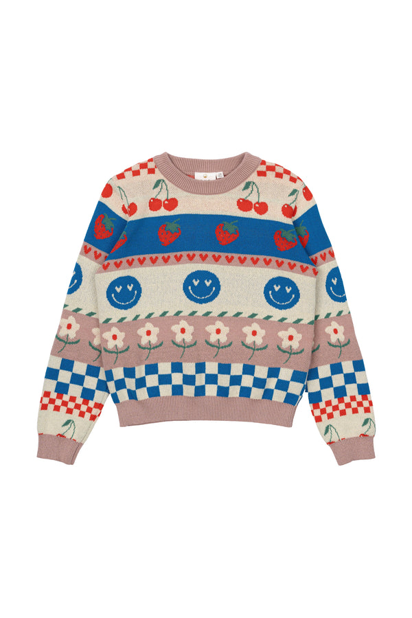Stylish jumper for girls with a beautiful and colorful design. Wide ribbed edges are found in each opening, and the jumper is made of soft, comfortable fabric with a comfortable fit. Additionally, this jumper from THE NEW features broad stripes with various patterns all over the body.