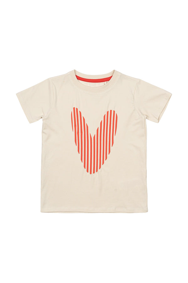 Smart THE NEW t-shirt with a front print of a heart shaped by vertical stripes. It is a cool and feminine t-shirt that can easily be combined with a variety of bottoms.