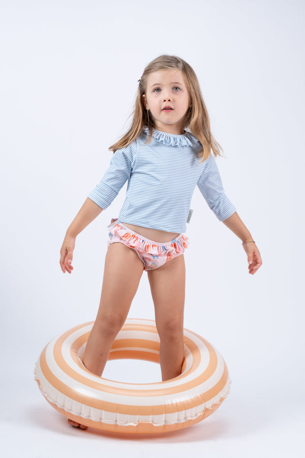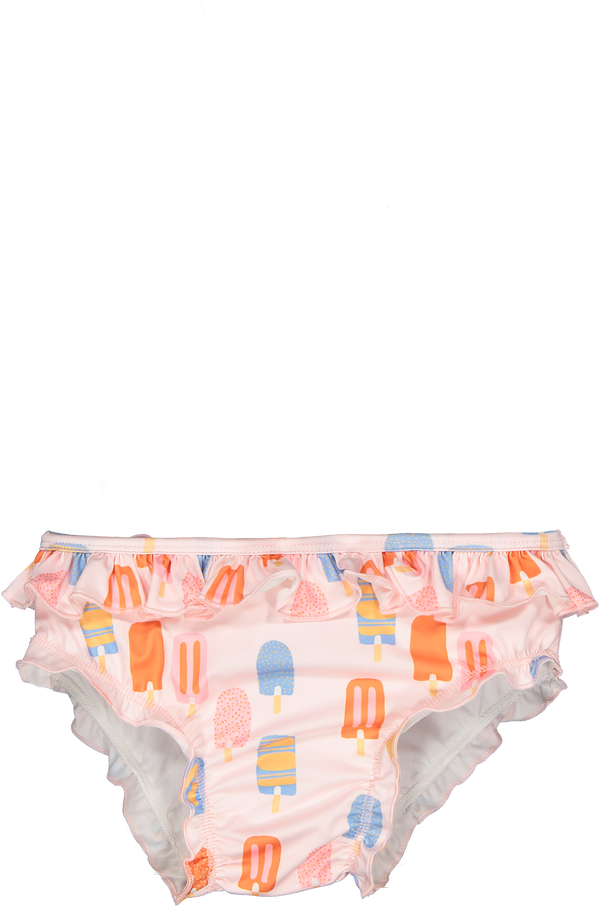 Baby girl´s bikini bottom in coloured ice cream pattern. Ruffles on the waist. Available sizes 6m to 2Y.