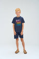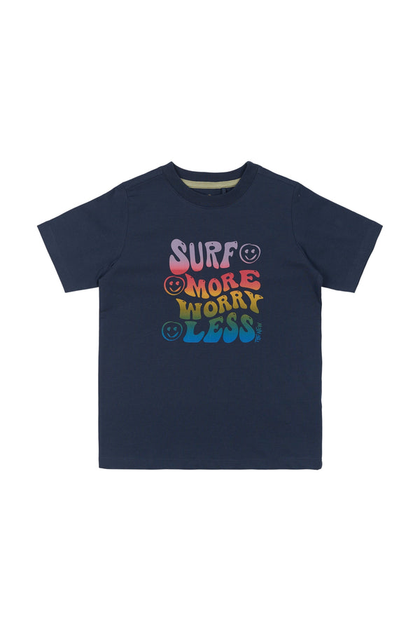 Stylish and comfortable t-shirt from THE NEW featuring a cool front print with the text 'Surf More Worry Less'. This t-shirt pairs well with a variety of bottoms, making it a versatile addition to the child's wardrobe.