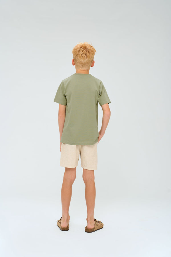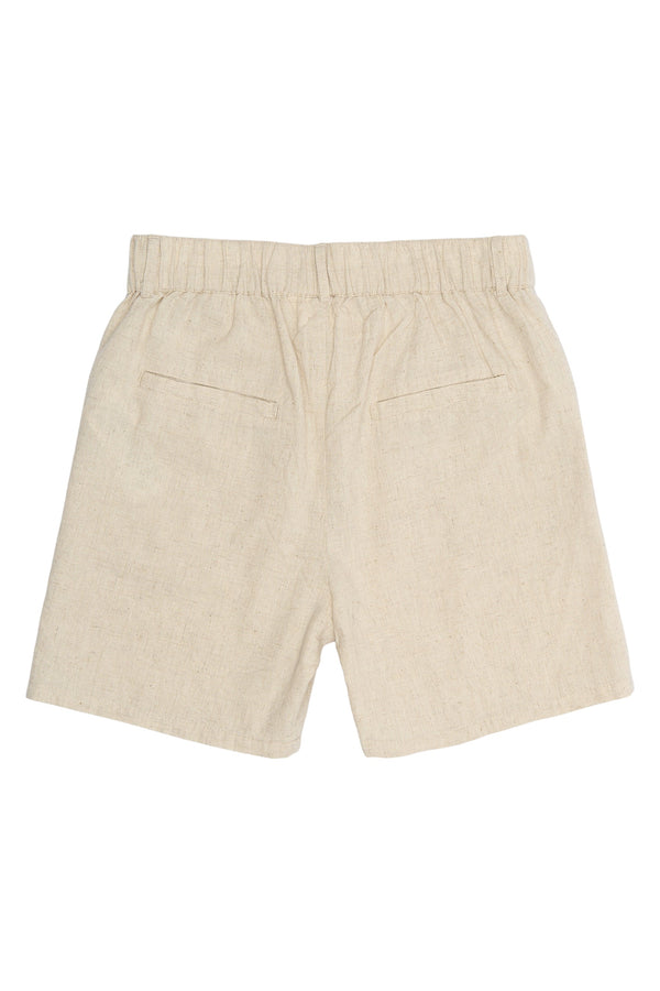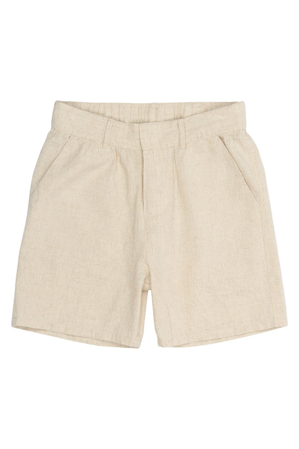 These beige shorts from THE NEW are stylish and classic, made from a light and comfortable linen blend. They feature side pockets, belt loops, and a regular fit. Perfect for a boy's wardrobe, they are suitable for both everyday wear and more formal occasions for children.