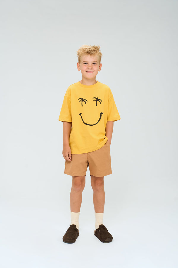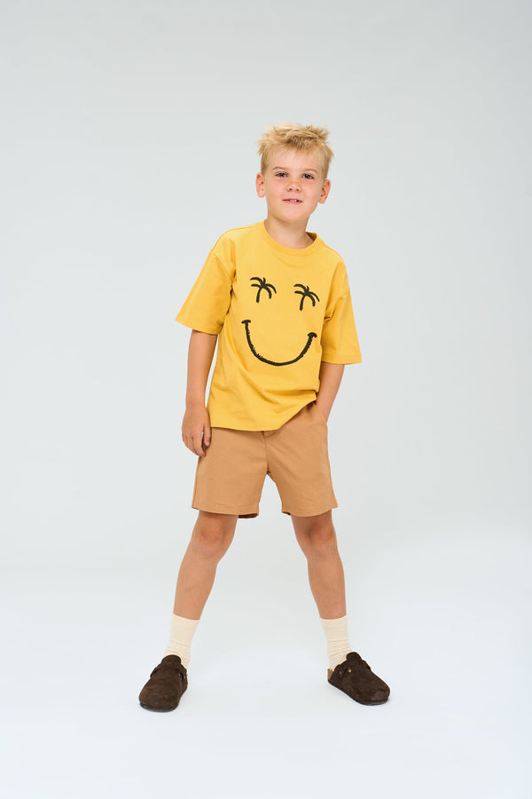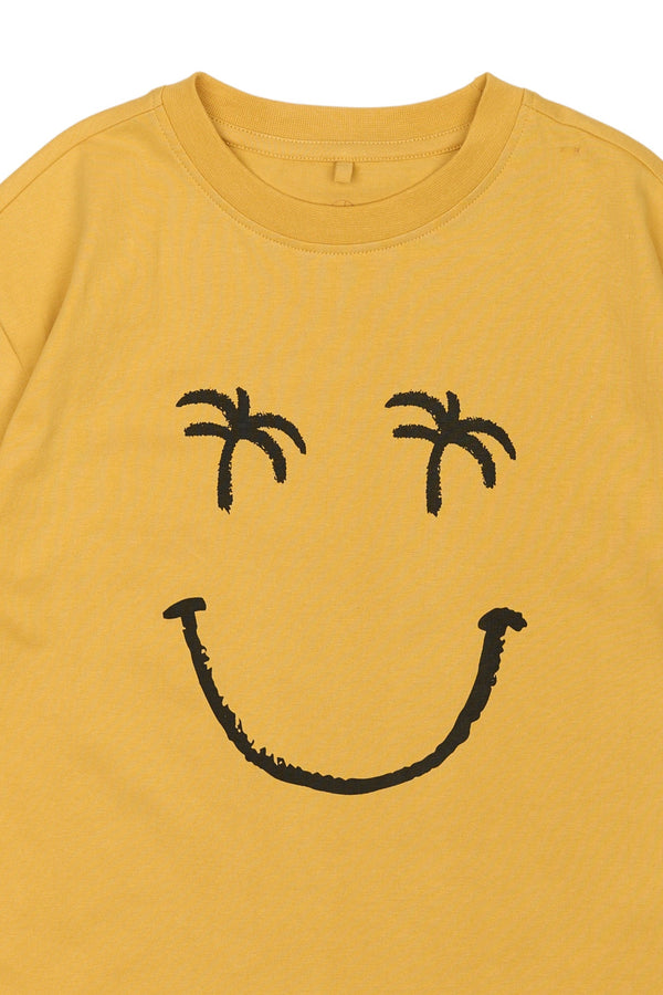 Yellow and vibrant t-shirt for boys who want to add color to everyday life, with a stylish and fun look. This t-shirt is perfect for daily wear and adds a cozy and comfortable touch to the child's wardrobe.