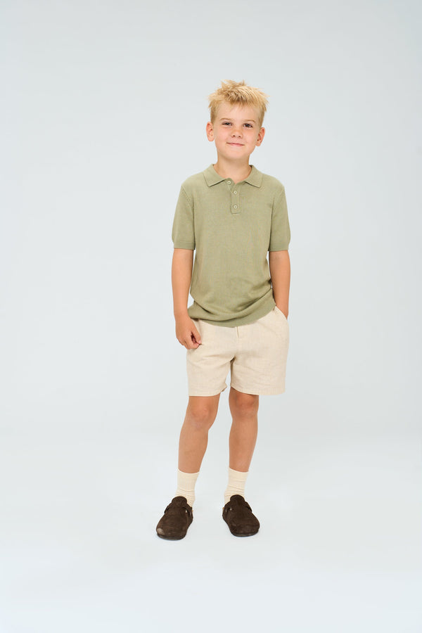 This knitted polo from THE NEW is a classic and stylish choice for the boys wardrobe. Made from soft, breathable material, it ensures all-day comfort. The short sleeves with ribbed cuffs and hem give it a modern yet timeless look. Its subtle green hue makes it easy to pair with various outfits. Perfect for both everyday wear and special occasions.
