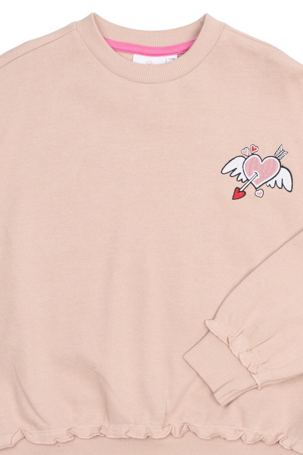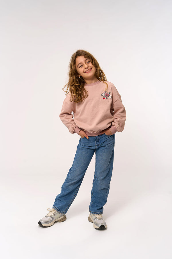 Cute oversized sweatshirt from THE NEW featuring a playful print of a heart with wings and an arrow through it. Ribbed cuffs, hem, and neckline ensure a comfortable and well-fitted design. Perfect for adding a fun and casual touch to everyday outfits.
