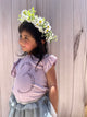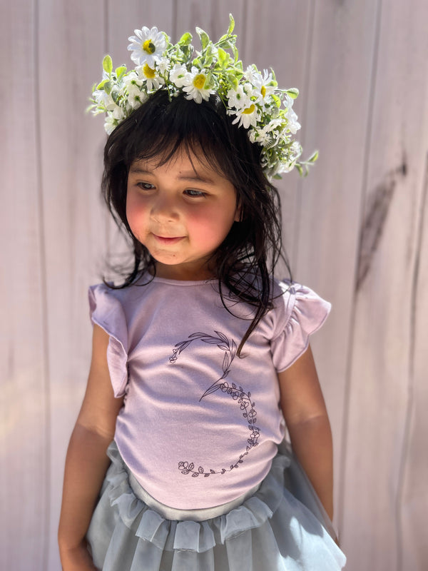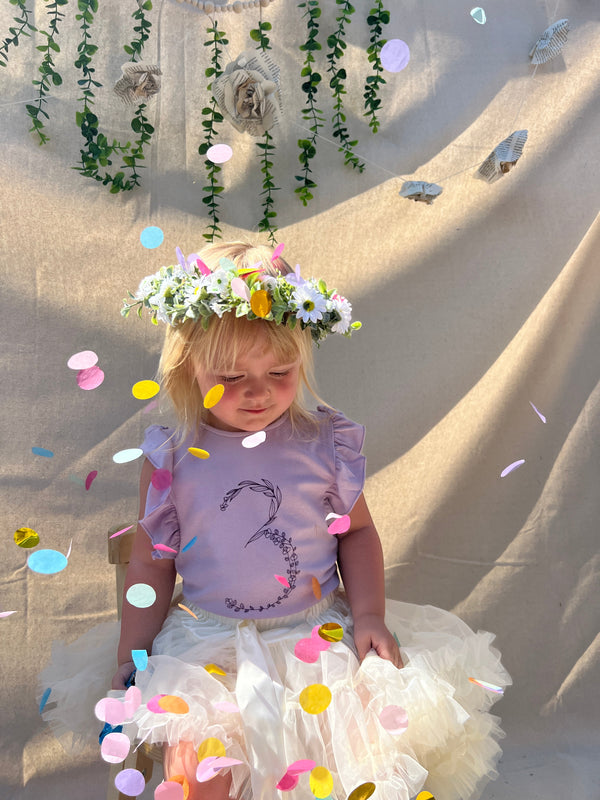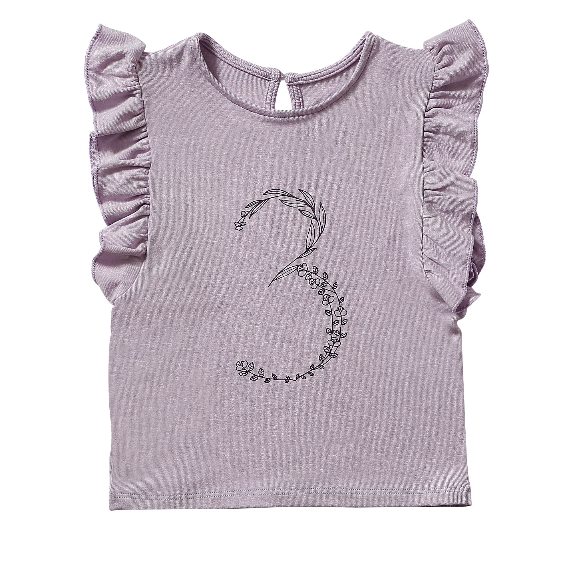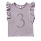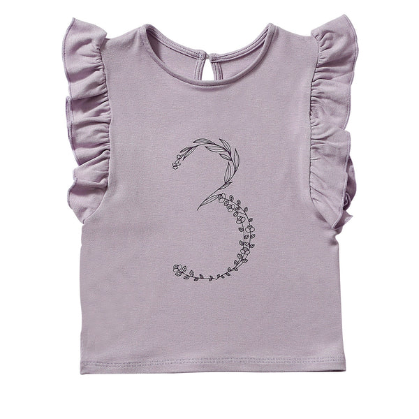 Short sleeve birthday t-shirt with no.3 in floral print, Ruffle detail at shoulders