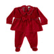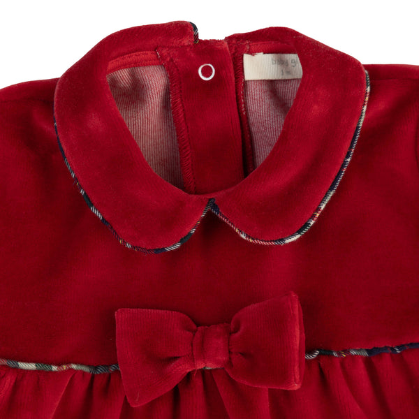 A festive red valour 2 piece set. This beautiful set by Baby Gi is complete with a large bow to the front and the tartan trim detail to the collar, chest and feet makes this a perfect outfit or an ideal gift.