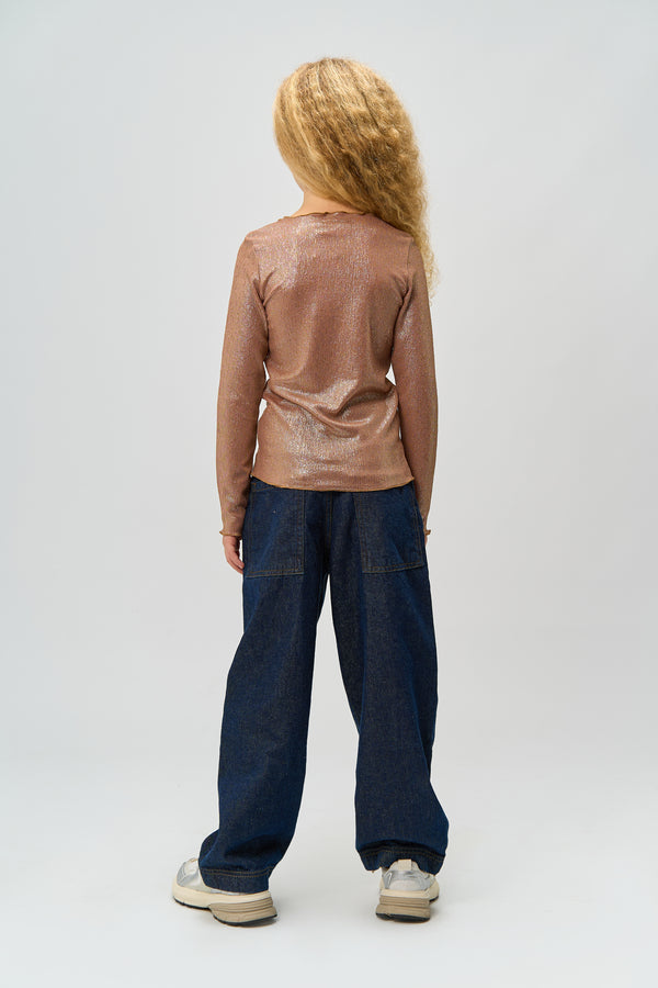An elegant and sparkling blouse from THE NEW with a lightly metallic effect, adding a feminine and sophisticated touch. The perfect fit enhances the silhouette, while the babylock at the neckline, sleeves, and bottom give a delicate finish. Ideal for both festive occasions and as a stylish layering piece in everyday wardrobes.